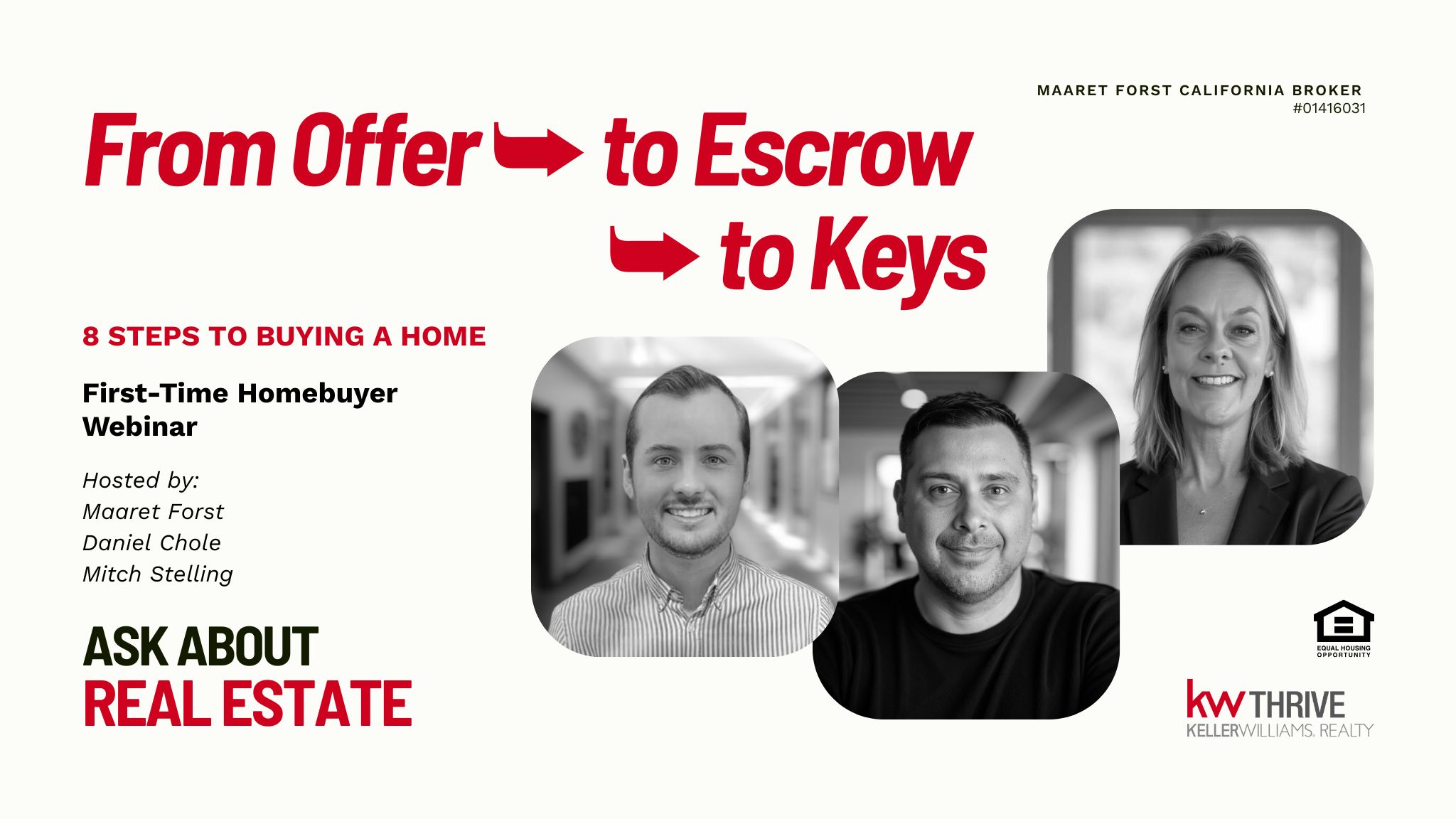 In this session, we’ll break the homebuying journey into 8 clear steps, from making your offer, to being under contract and in escrow, to what actually happens on Closing Day when you get the keys.